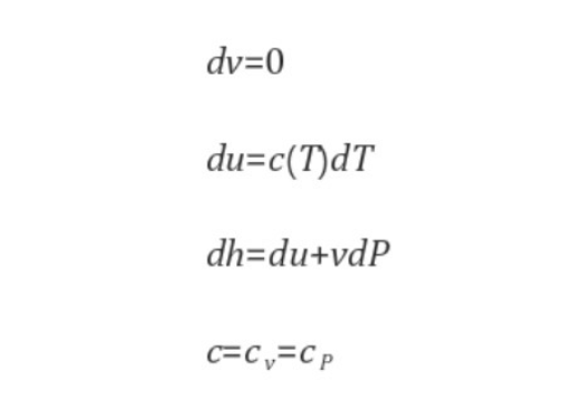 따라서 dv=0 일때 비압축성 물질(비압축성 유체)의 내부에너지 u는 온도 T만의 함수이며